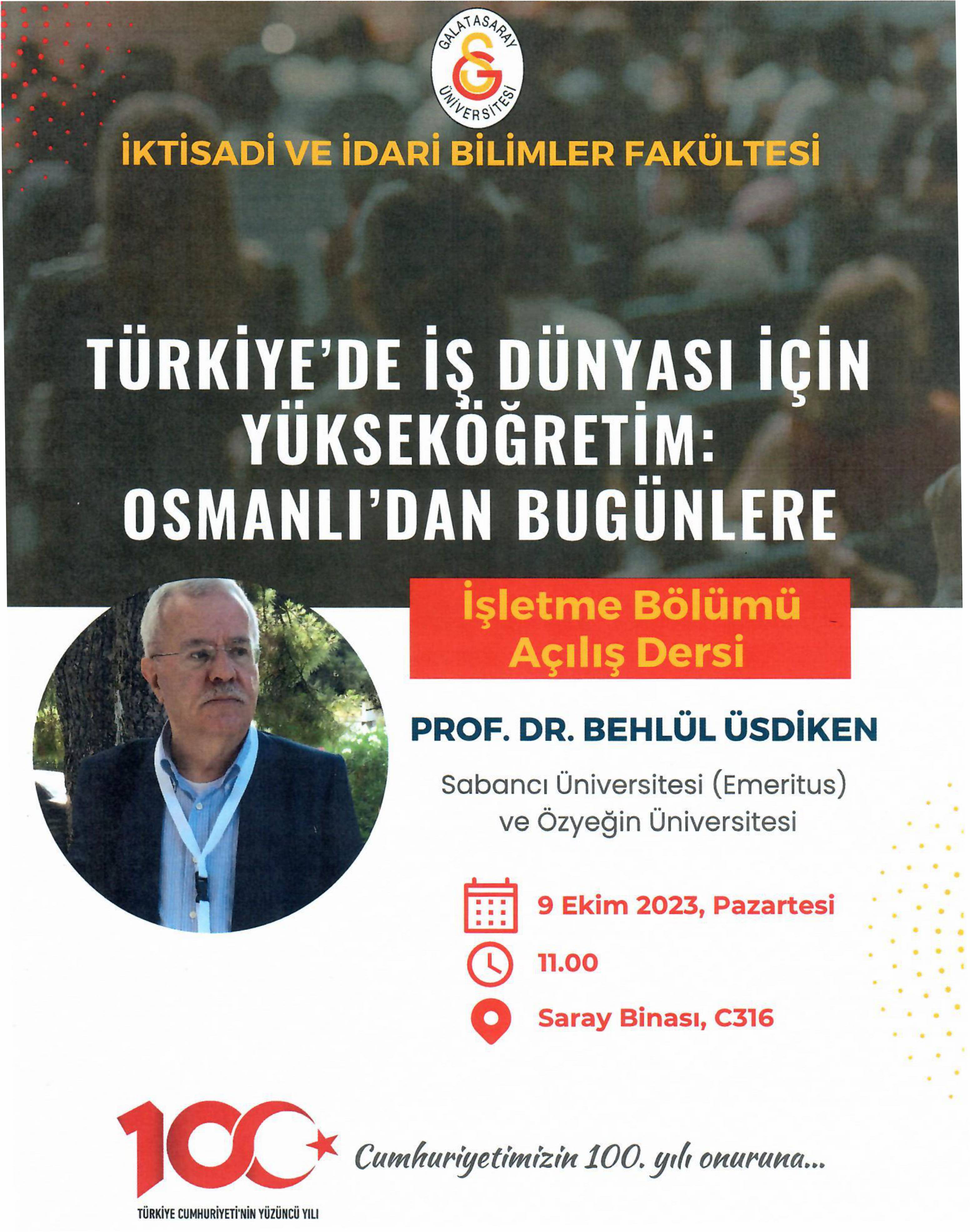 İktisadi ve İdari Bilimler Fakültesi İşletme Bölümü Açılış Dersi: Türkiye'de İş Dünyası İçin Yükseköğretim: Osmanlı'dan Bugünlere